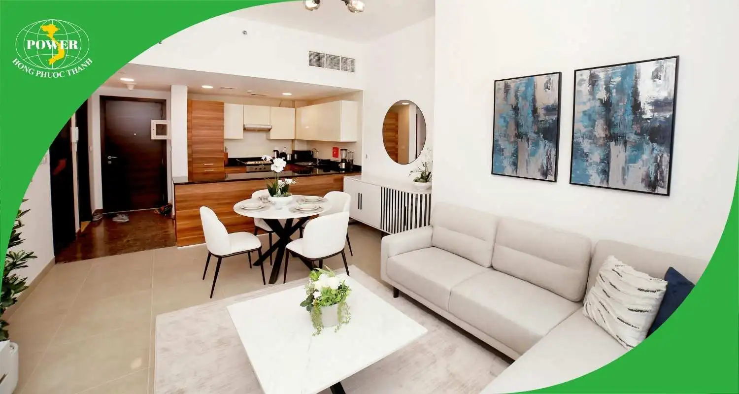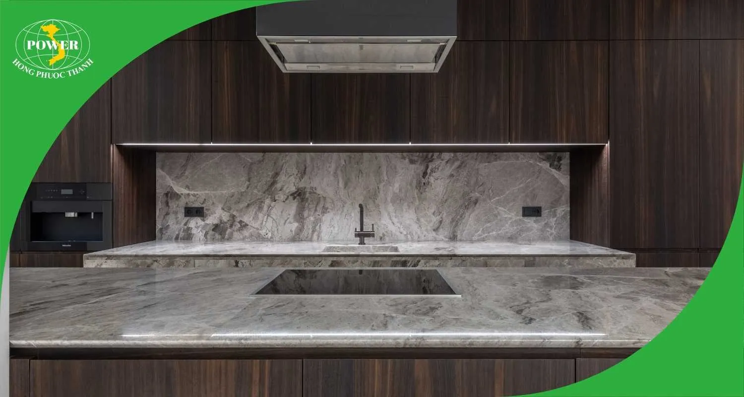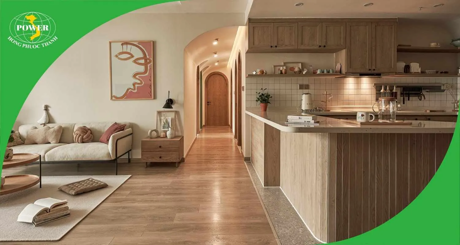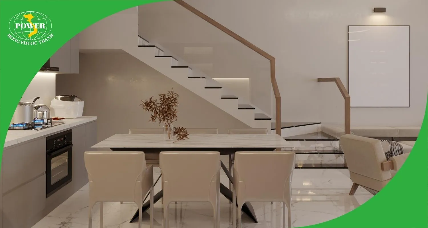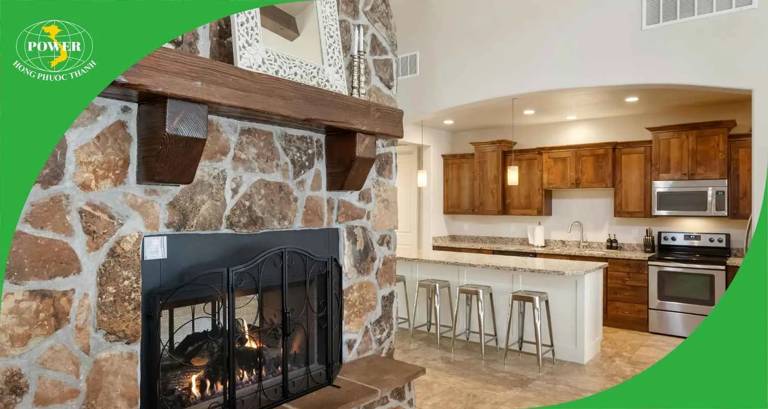 - Vật liệu chất lượng: Chẳng hạn như sử dụng tủ bếp có chất liệu là gỗ tự nhiên, mặt bếp được làm từ đá nhân tạo hay kính cường lực,…