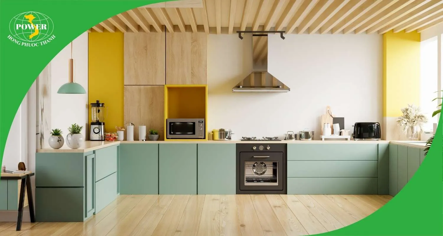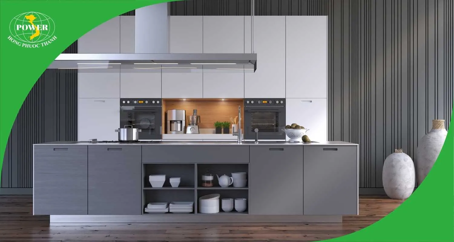 - Thiết bị bếp hiện đại: Bạn có thể ưu tiên trang bị các thiết bị tiết kiệm điện năng và an toàn như máy rửa chén, đồ dùng nhà bếp bằng inox, lò nướng,…